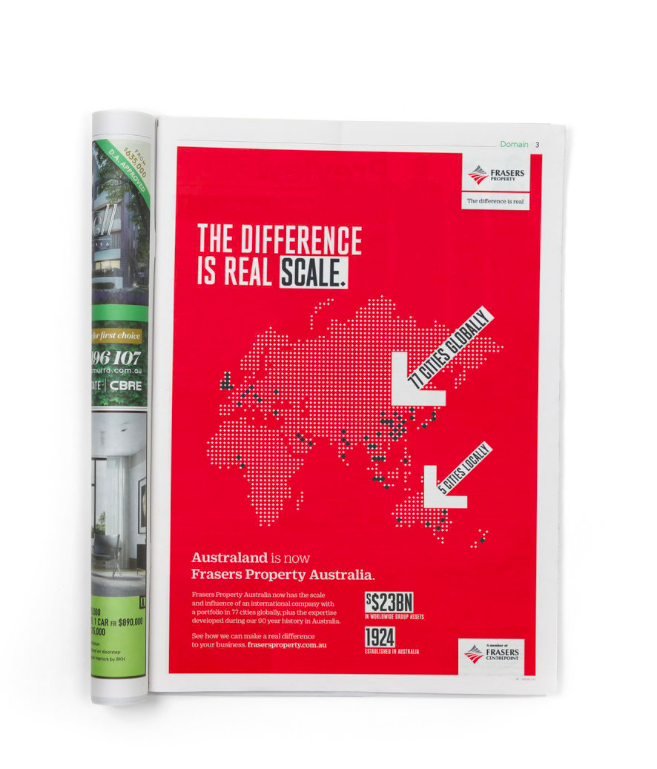 One of the key messages was communicating the strength that comes from joining with a global business and how this translates into certainty for customers. This is a major point of difference that Frasers has over players that only operate in the Australian market. The brand is anchored in the idea of ‘real places for real people’ which is embodied in the tagline - ‘The Difference is Real’. This line enables Frasers to communicate their commitment to making a genuine difference to customers as well as highlighting their point of difference in the market.