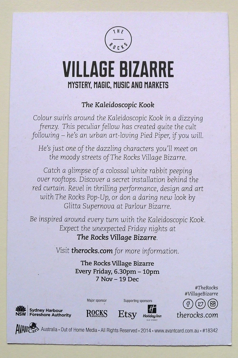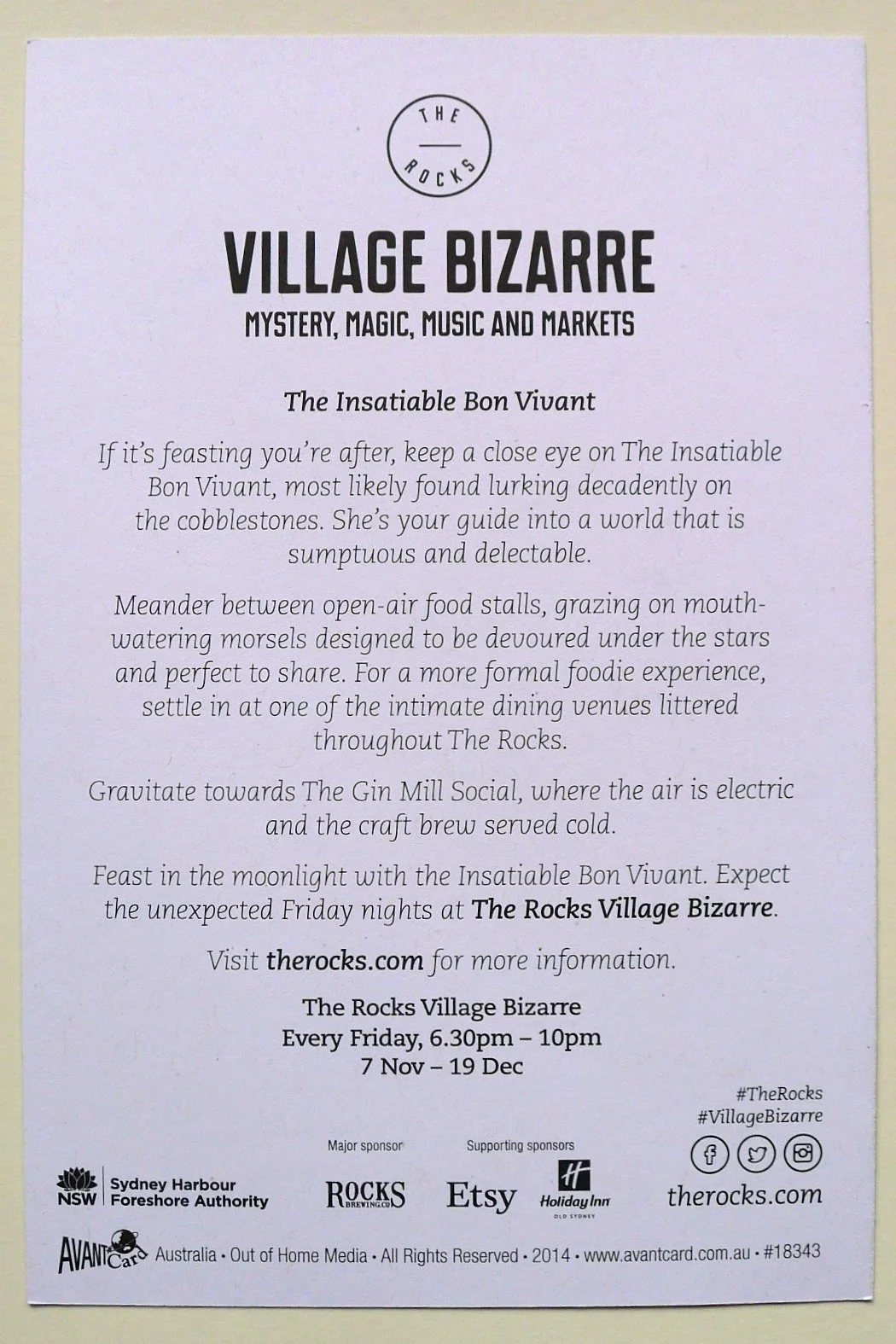 The Rocks brand identity speaks about the characters - the 'many hands' - who bring the precinct to life both historically and today. In keeping with this, four characters were created to reflect each of the four elements of The Rocks Village Bizarre, a series of evening markets, music, performances, and interactive artworks curated in, and around, The Rocks on Friday evenings in November and December.